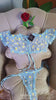 O top possui modelo ombro a ombro com elástico para ajuste, além de amarração frontal com laço de cetim, que permite adaptar ao corpo com charme. A calcinha fio acompanha o visual com laterais que se ajustam por amarração e acabamento franzido, ideal para diferentes tipos de quadril.