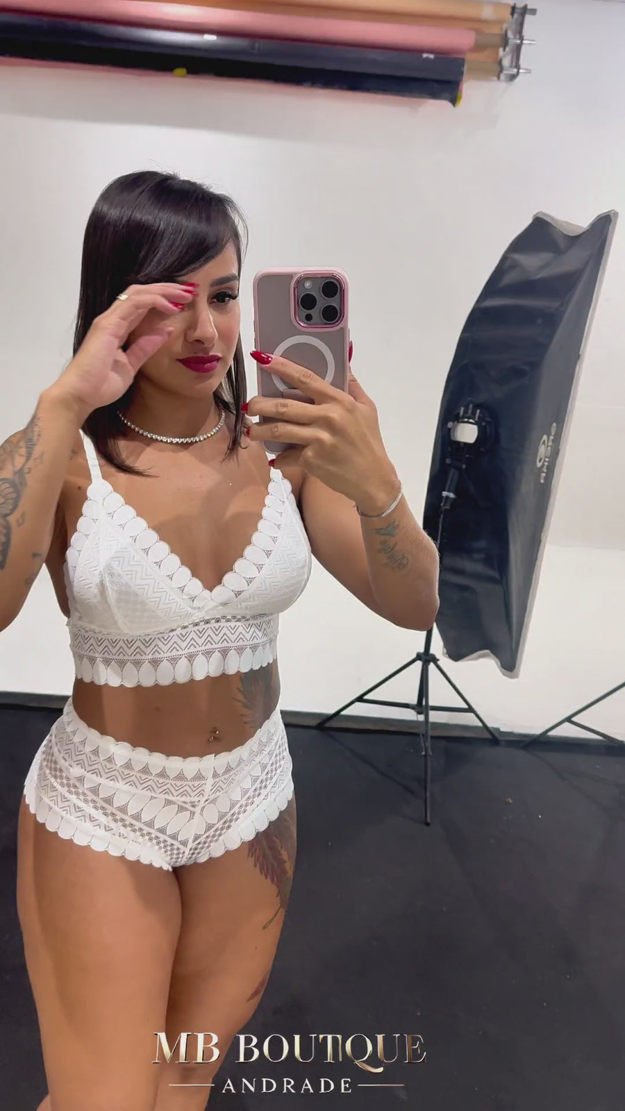 Uma verdadeira obra de arte no seu corpo! Esse conjunto sem bojo e sem aro é inteiramente feito em renda geométrica, com recortes e texturas que moldam e valorizam cada curva. A parte de trás é um show à parte: ousada, elegante e com um acabamento que parece feito sob medida.