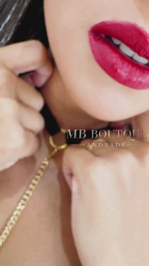 Confeccionado em renda preta delicada, ele traz tiras estratégicas que desenham o corpo com sensualidade sutil e provocante. O destaque fica por conta das correntes removíveis em dourado, que criam um visual marcante e versátil: use com ou sem correntes, conforme a sua intenção para o momento.