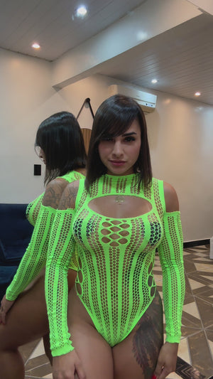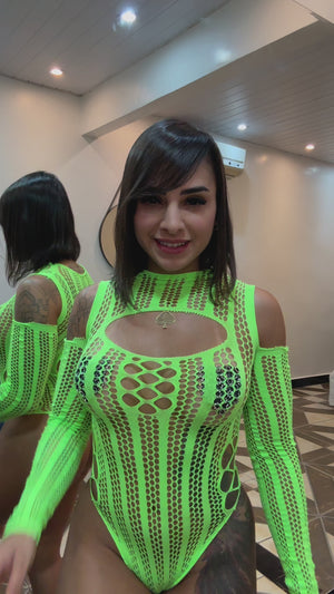 Para mulheres ousadas que querem brilhar e impressionar. O verde neon vibrante destaca o corpo com sensualidade e atitude. Perfeito para noites especiais ou momentos em que você quer se sentir irresistível.