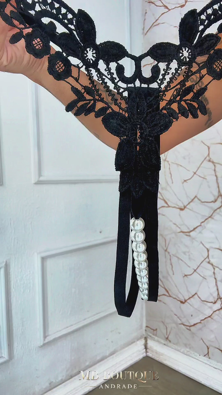 A Calcinha Fio Dental Preta com Pérolas e Renda Floral é a escolha perfeita para quem busca lingerie sensual, elegante e impactante para momentos especiais. Criada com renda detalhada, tiras finas e uma fileira de pérolas macias, essa peça combina estética sofisticada com conforto e requinte.