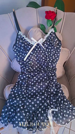 Romântica, envolvente e cheia de personalidade, a Camisola Isadora foi criada para valorizar o corpo com elegância e feminilidade. Com estampa poá clássica, detalhes em renda e laços delicados, ela combina um visual retrô com um toque moderno e marcante.