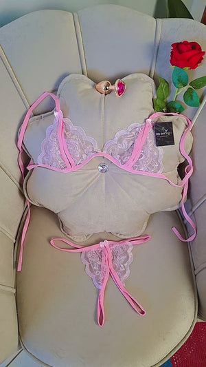 Descubra a lingerie que vai transformar seus momentos mais íntimos em experiências inesquecíveis. Este conjunto de lingerie rosa em renda transparente foi criado para mulheres que desejam unir delicadeza e ousadia em uma só peça. O sutiã sem bojo e sem aro proporciona leveza e conforto, enquanto a calcinha fio dental com abertura estratégica é um convite irresistível à sedução. Uma escolha exclusiva da MB Boutique para quem busca lingerie sensual, sofisticada e romântica.